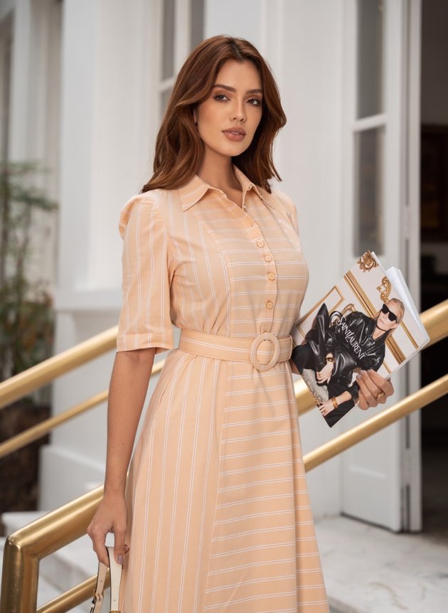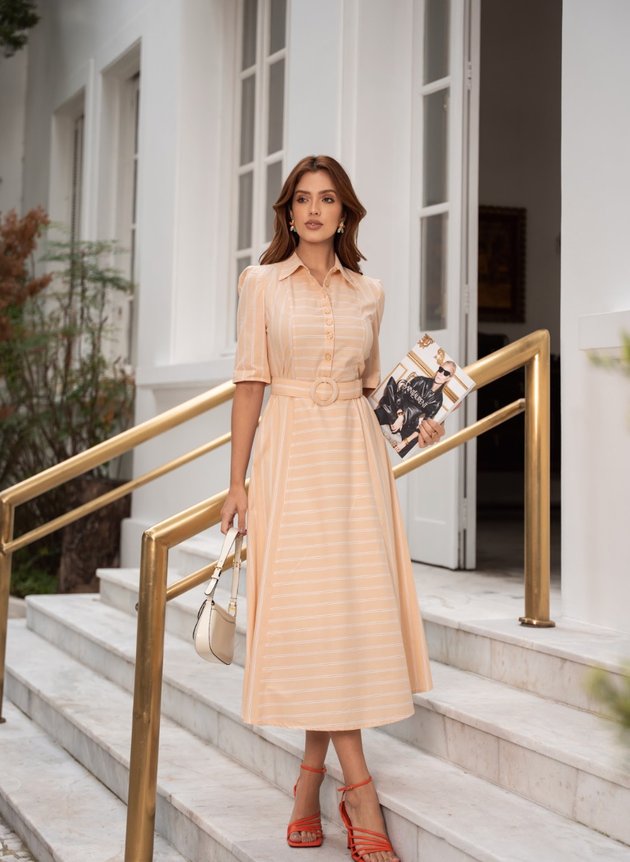 Vestido Adria modelo camisaria em listras, com gola dupla abertura em botões até a cintura, que é marcado por um cinto encapado de mesmo tecido e cor da peça. Sua manga curta possui acabamento em punho largo. De comprimento max midi, sua saia toda forrada traz conforto e segurança ao uso de modelagem evasê com um caimento impecavel ao look, de fácil uso também possui zíper comum na lateral e bolso faca embutido trazendo praticidade a peça, um modelo elegante e atemporal que transita entre o classico e o despojado, basta mudar os acessórios e sapatos corretos. Use e abuse da criatividade para um look atemporal e cheio de conforto.
