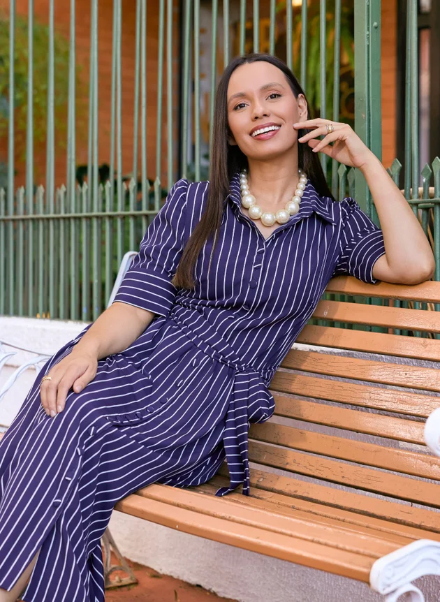VESTIDO LISTRADO AZUL ESCURO LUCIANA - JANY PIM