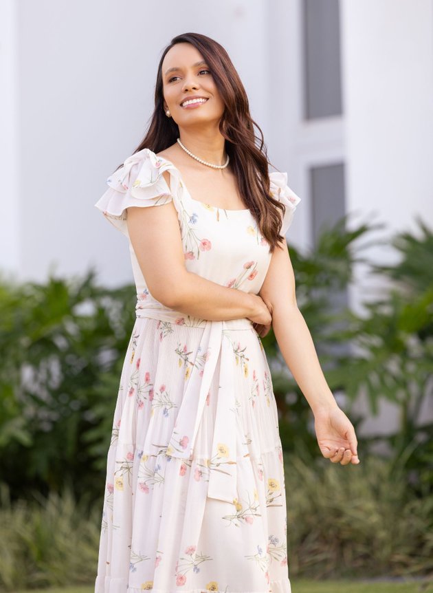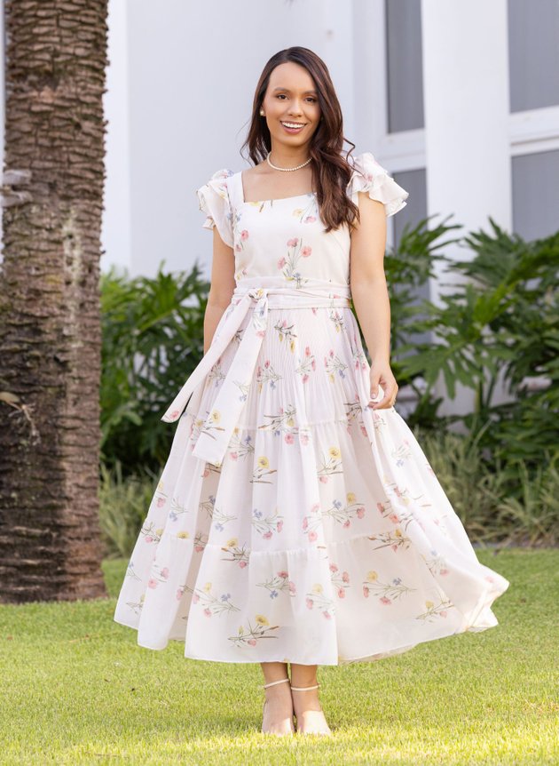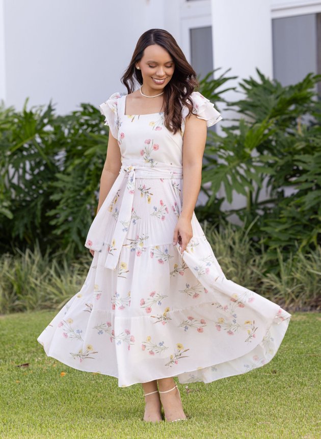 VESTIDO MIDI FLORAL CREME MARLI - JANY PIM