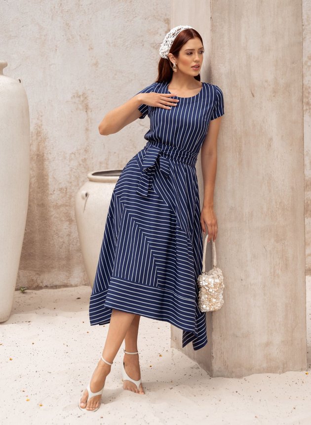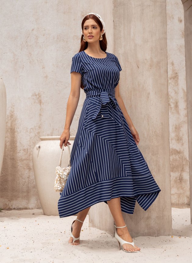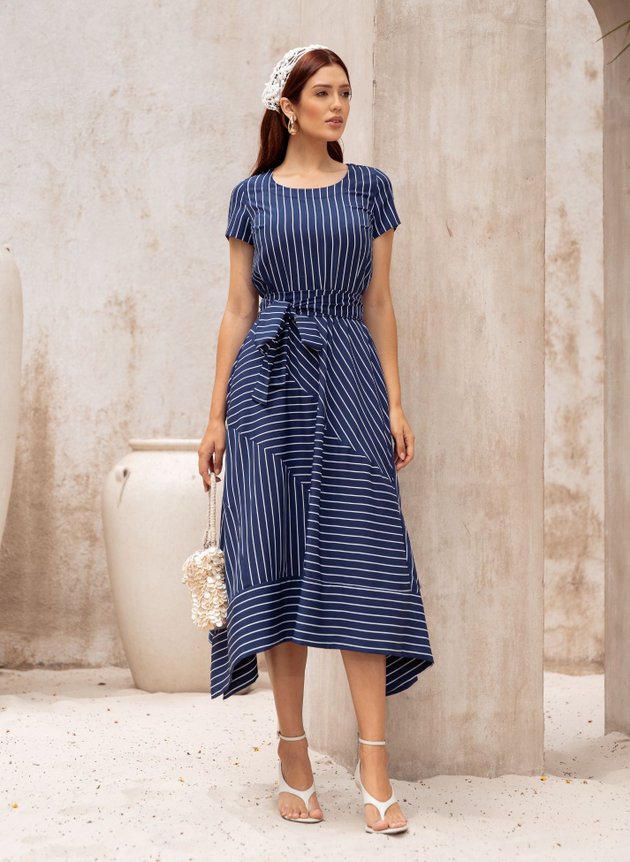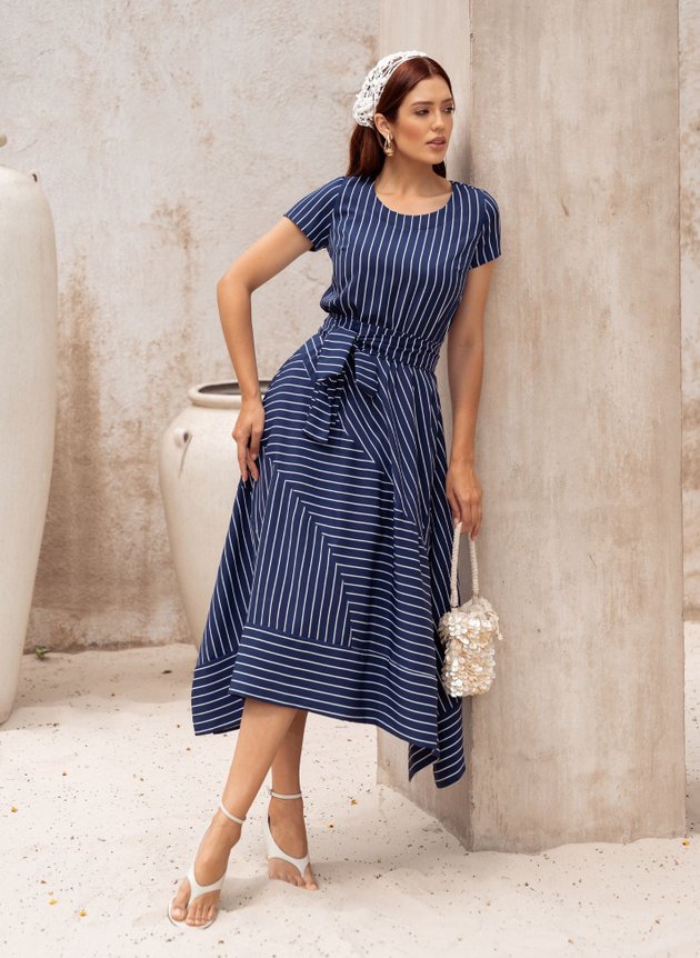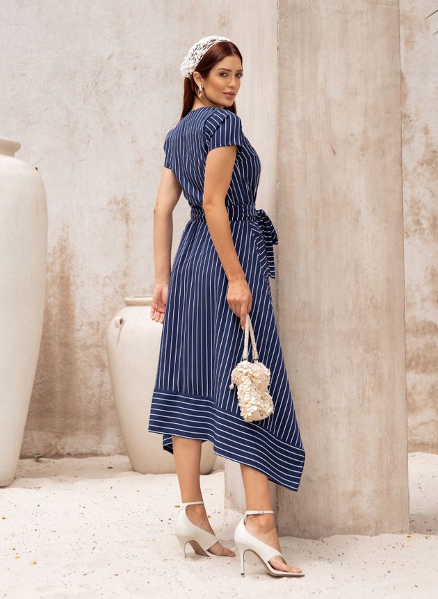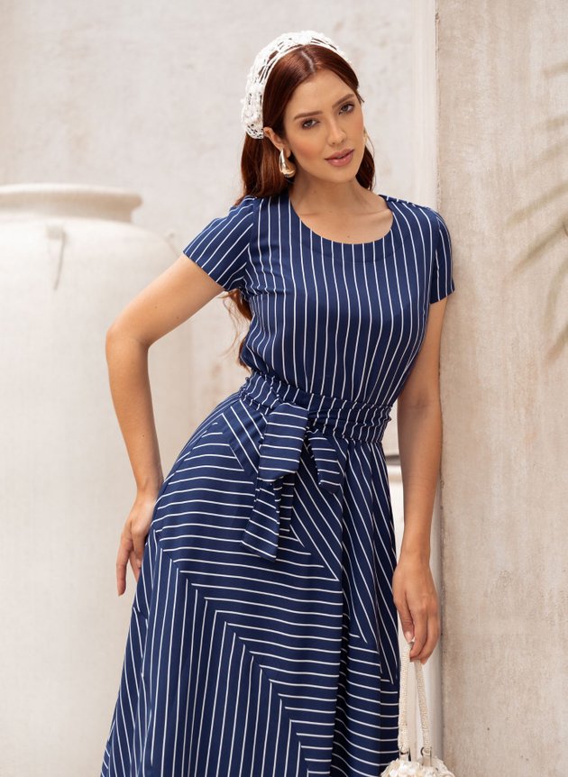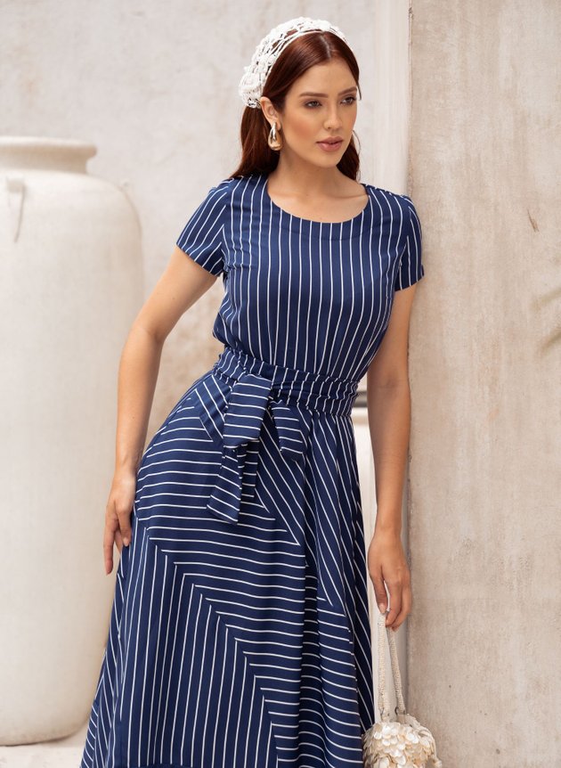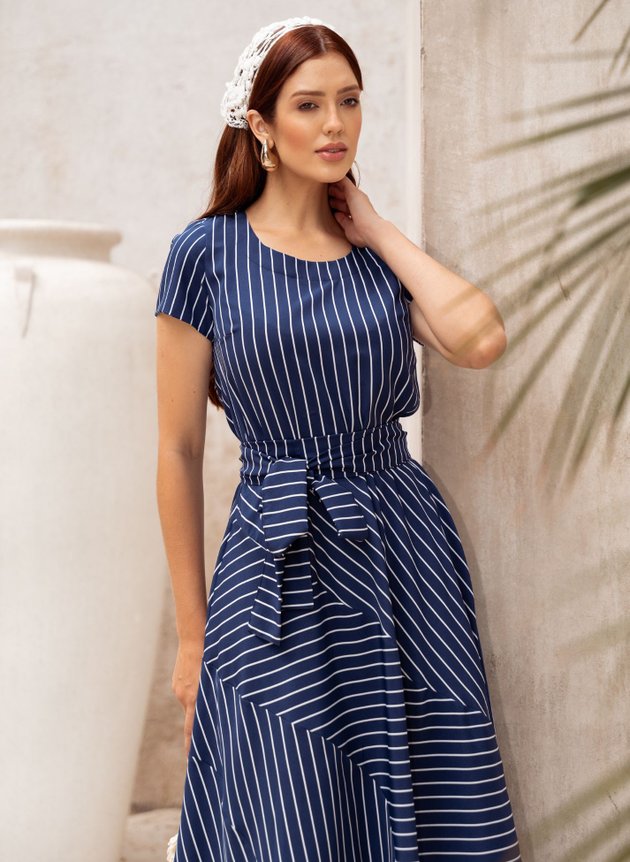 VESTIDO MIDI LISTRADO AZUL MARINHO BEATRIZ - JANY PIM