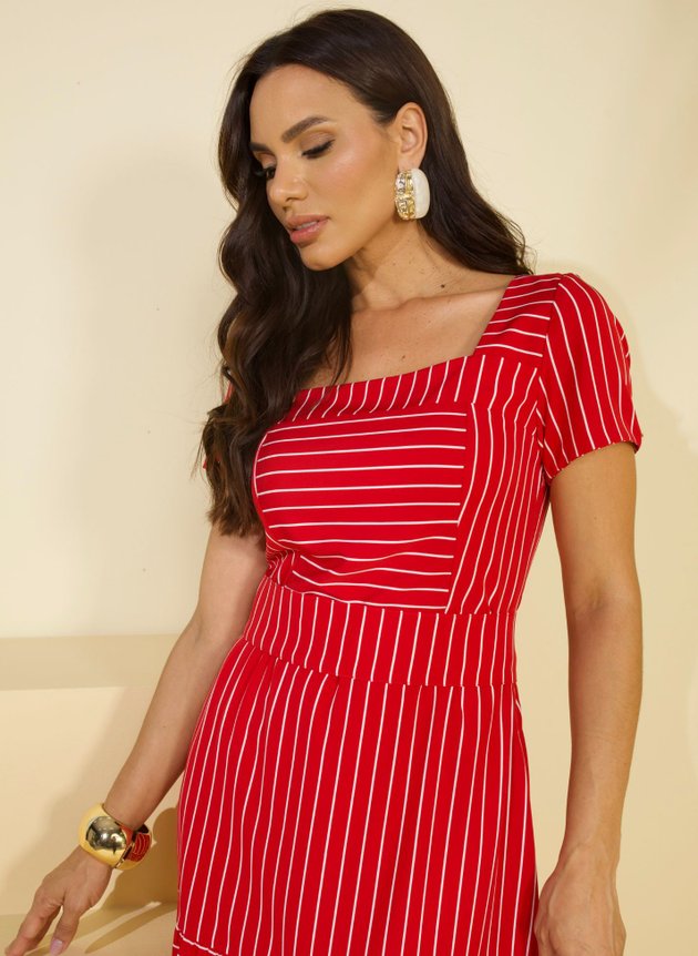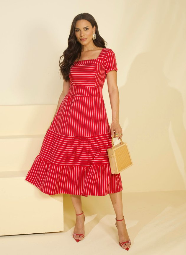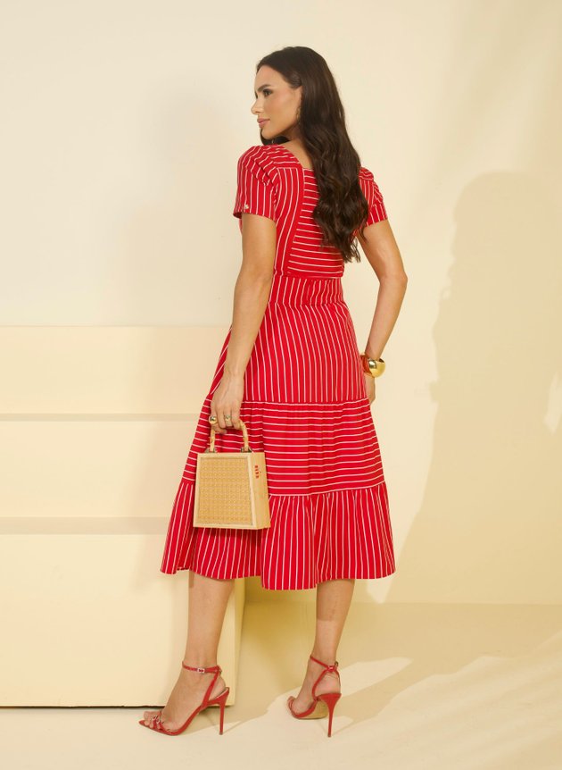 VESTIDO MIDI VERMELHO LISTRADO SOFIA - JANY PIM