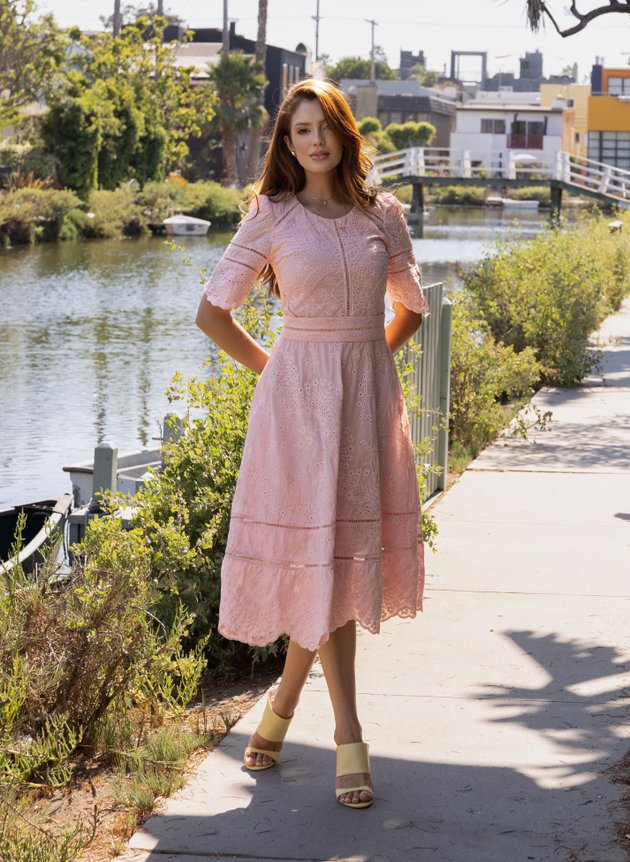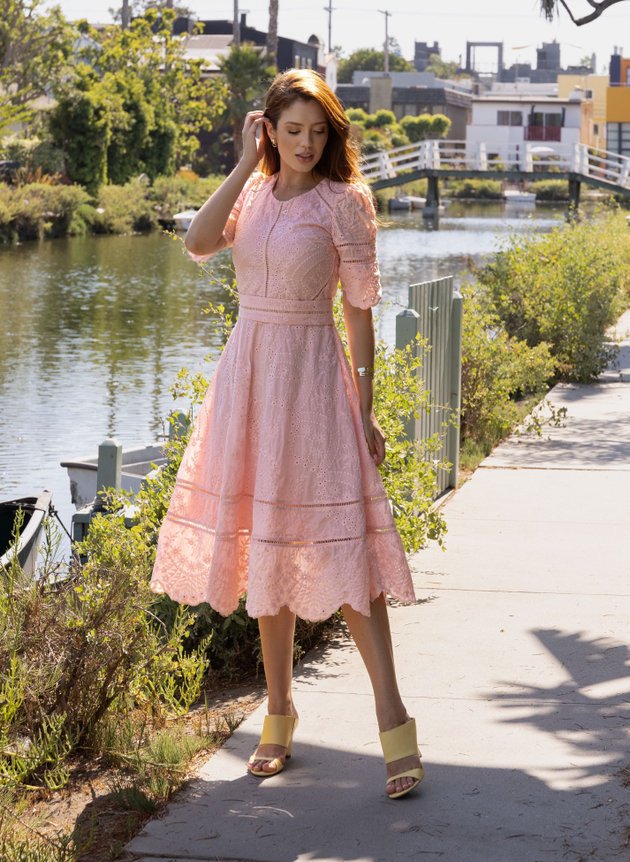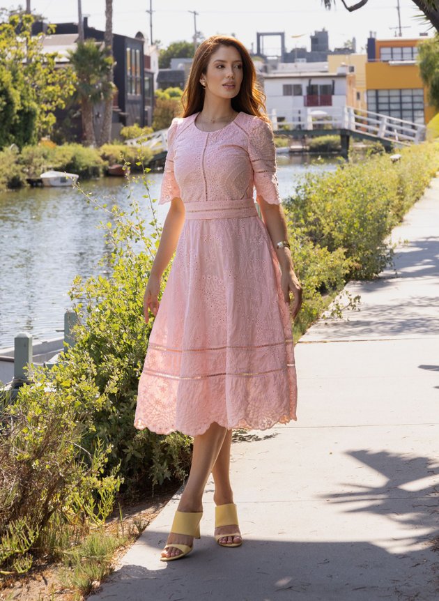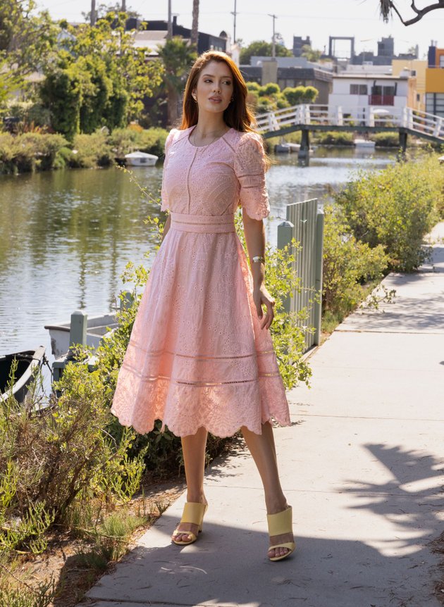 Vestido Yasmim confeccionado em tecido de laise na cor salmão com decote arredondado e corpo da peça todo costurado em recortes cm entremeio palito trazendo uma sofisticação e encaixe perfeito ao corpo. De fácil uso com abertura em zíper comum na lateral, cintura marcada e faixa com fechamento em botões madre perolas, sua saia midi evasê possui um caimento impecável, com barrado em acabamento da própria laise. Destaque para as mangas mais alongadas com franzido na altura do ombro, detalhe em entremeio e acabamento do desenho da laise também, para maior conforto peça é toda forrada no corpo e saia em cotton, um tecido confortável e de mesma cor da peça, trazendo a harmonia perfeita do look, uma peça sofisticada e elegante que pode ser usada em diversas ocasiões e estações do ano.